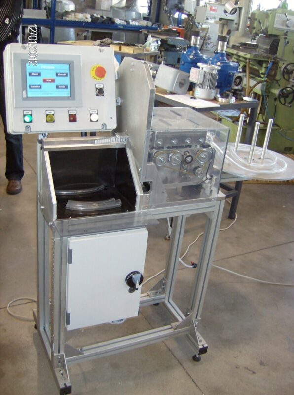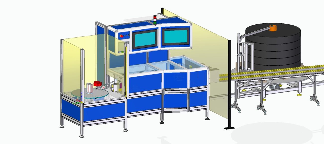 Lamierini statori, ciclo automatico continuo (carico e scarico compreso), tripla rotazione dei pacchi lamierini per compensare l’altezza, controllo altezza, presa idraulica, saldatura a tig.